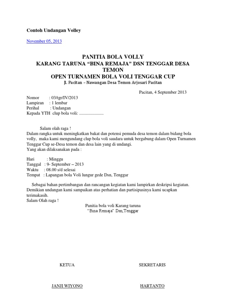 Contoh Surat Undangan Turnamen Bola Volly Husnuls492 Com