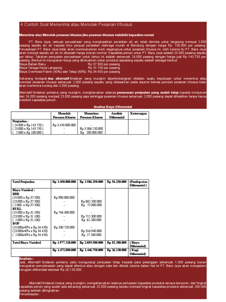 4 Contoh Soal Menerima Atau Menolak Pesanan Khusus